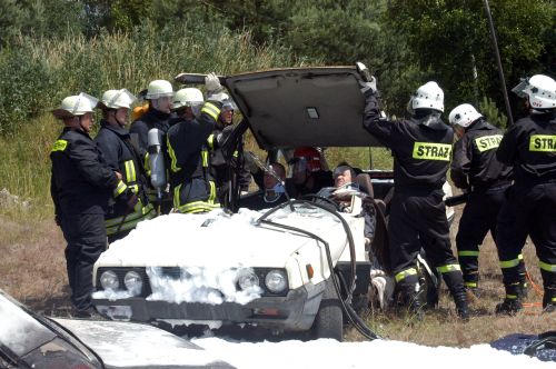 Gemeinsame Rettung von verletzten Personen aus einem Unfall-PKW mit Hilfe von Schneidwerkzeug .